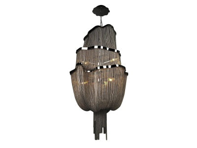 Transform your living space into a modern oasis with the stunning Avenue Lighting Mulholland Drive Hanging Chandelier. This exquisite piece showcases a handcrafted black polished nickel frame, elegantly adorned with a draped and flowing chain that adds a touch of sophistication and drama to any room. Perfect for dining areas, entryways, or living rooms, this chandelier not only illuminates your space but also serves as a breathtaking focal point. Experience the magic of light and design combined in one captivating fixture.