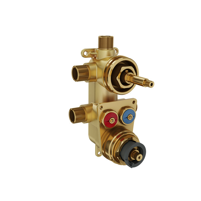 Introducing the Baril Shower Valves 3-Way Tp Rough – the ultimate solution for a seamless and luxurious shower experience. Designed with innovation in mind, this shower valve effortlessly minimizes temperature fluctuations, ensuring you enjoy the perfect water temperature every time. Its 3-way diverter with shared ports allows for easy water flow control, making it ideal for multi-outlet showers. With options for both 1/2 inch Male NPT or welded copper connections, this valve is built to accommodate various plumbing setups. The reversible check and non-return valves provide added reliability in case of water supply inversion, showcasing Baril's commitment to quality and performance.