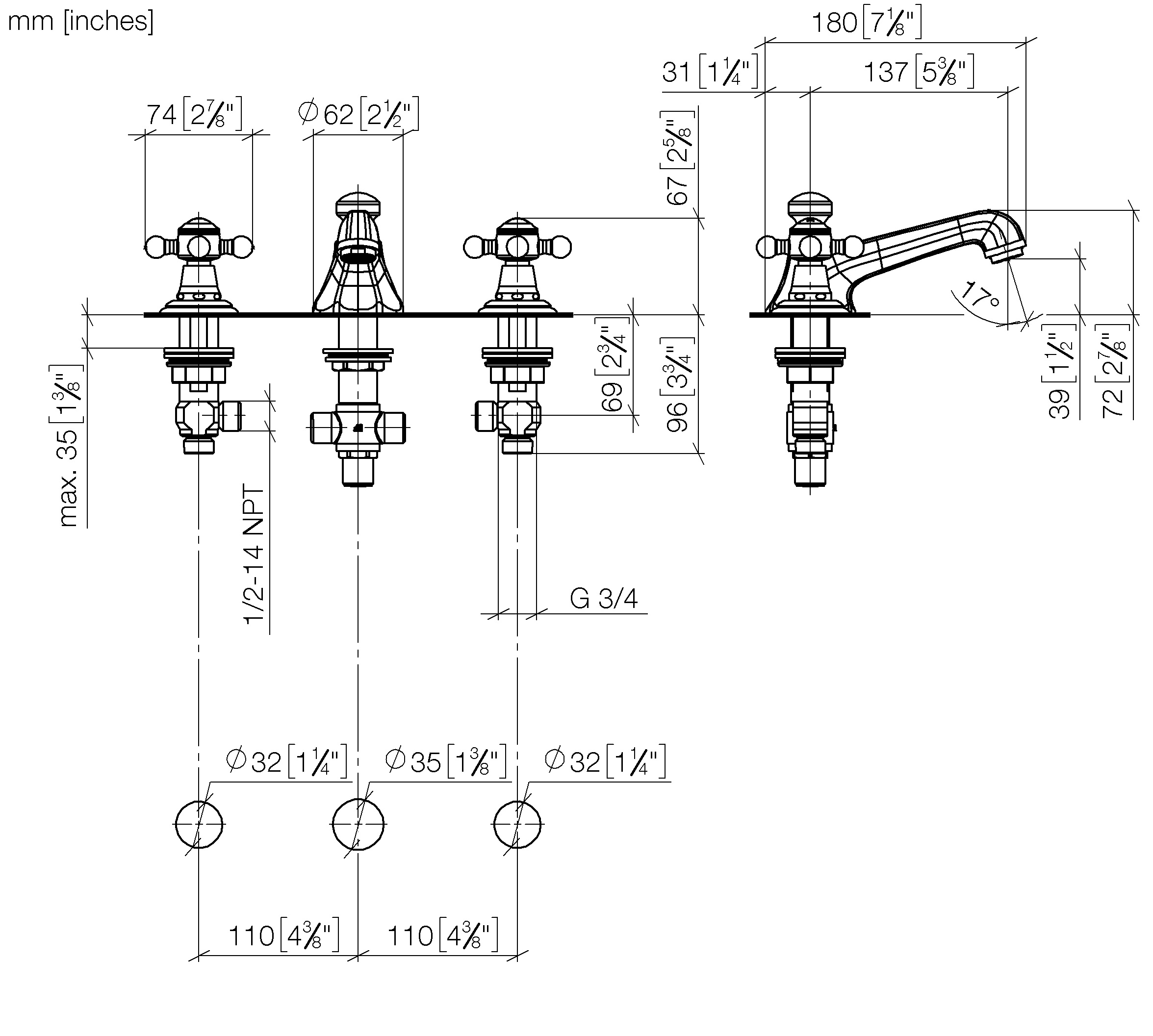 - Spout hole diameter: 1-3/8"