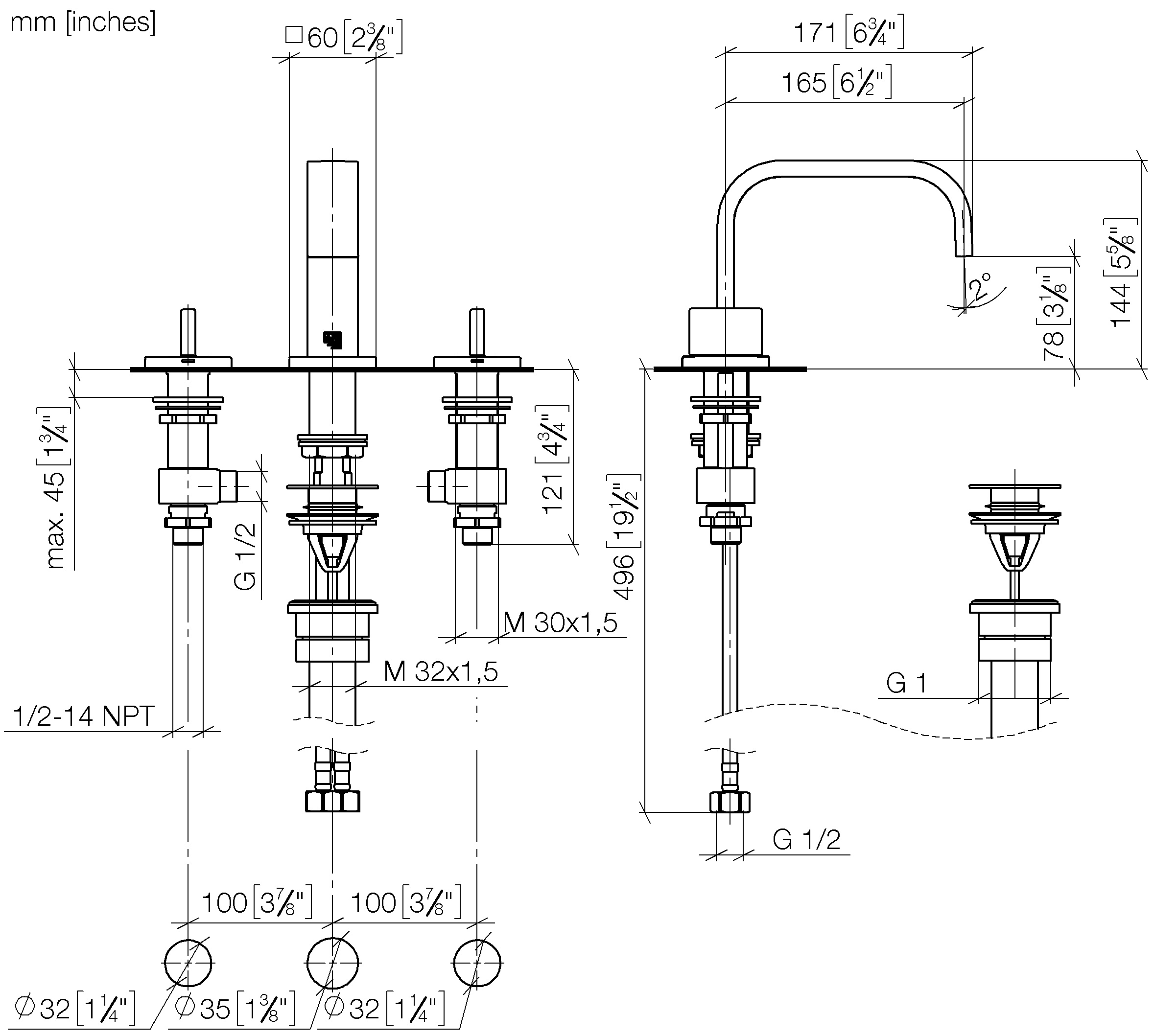 - Spout hole diameter: 1-3/8"
