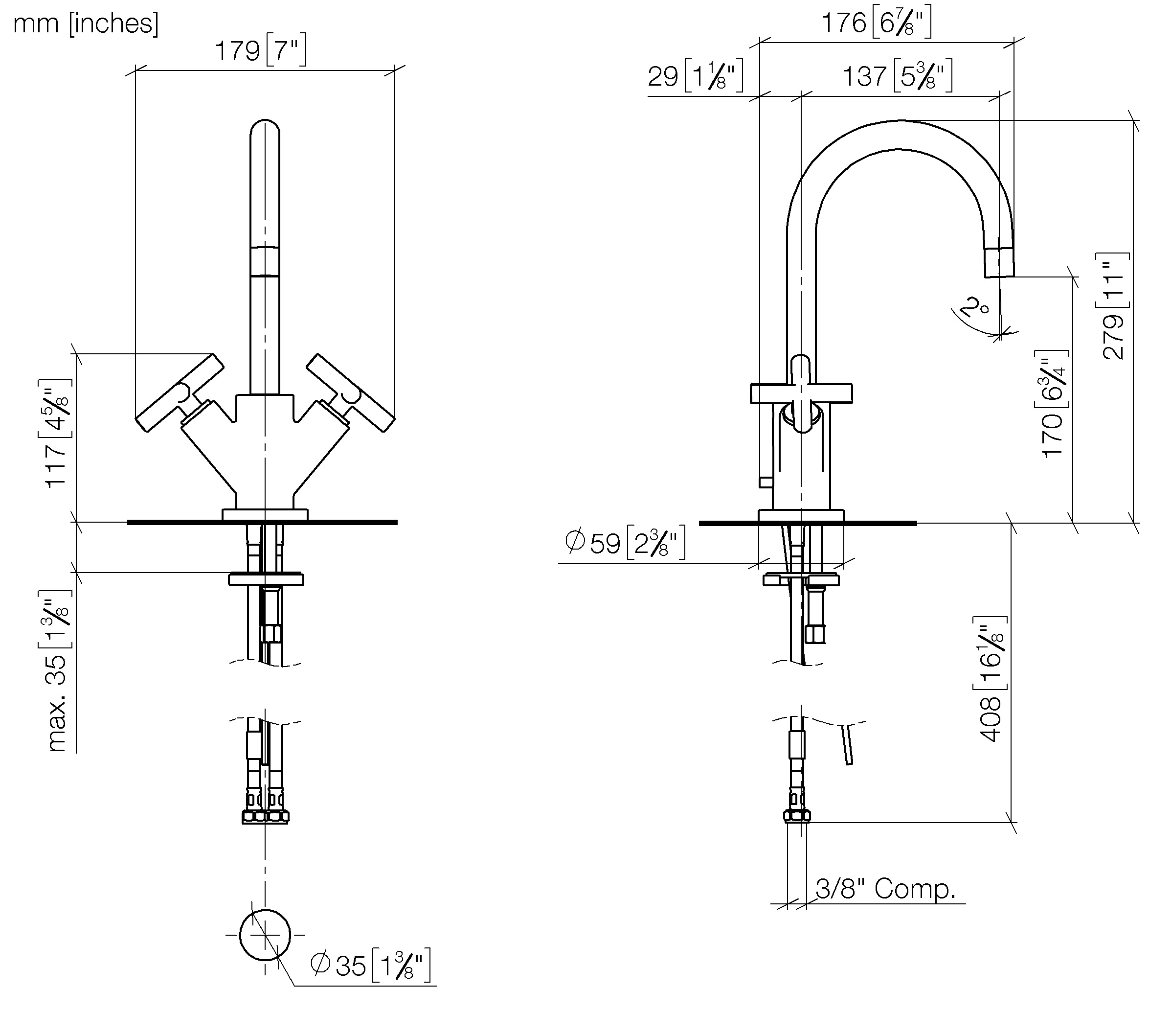 - Water flow rate limited to max. 1.2 gpm