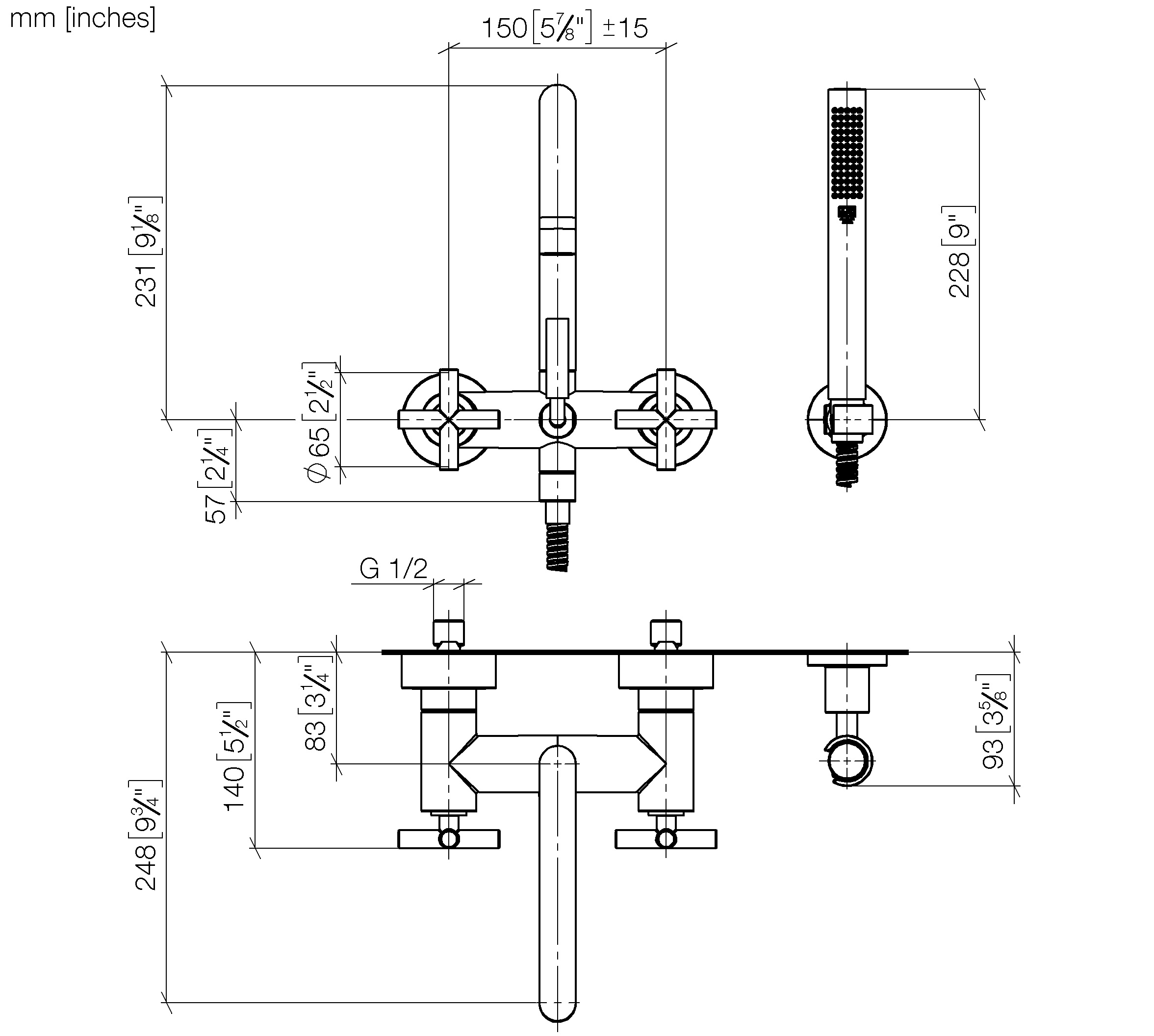 About The Dornbracht TARA Tub Mixer For Wall-Mounted Installation With Hand Shower Set