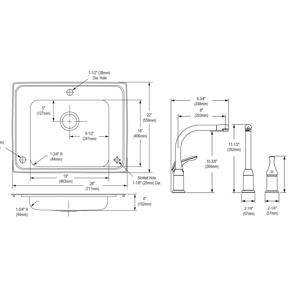 - DRAIN OPENING: Sink drain opening measures 3-1/2".