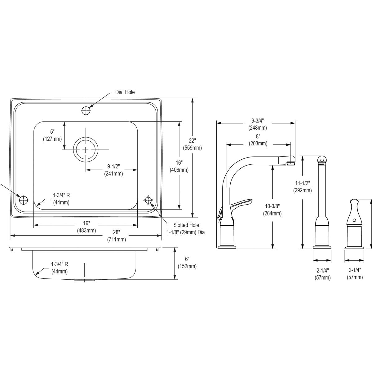 Elkay Lustertone Classic 28" x 22" x 6" Single Bowl Drop-in Classroom ADA Sink+Faucet/Bubbler Kit