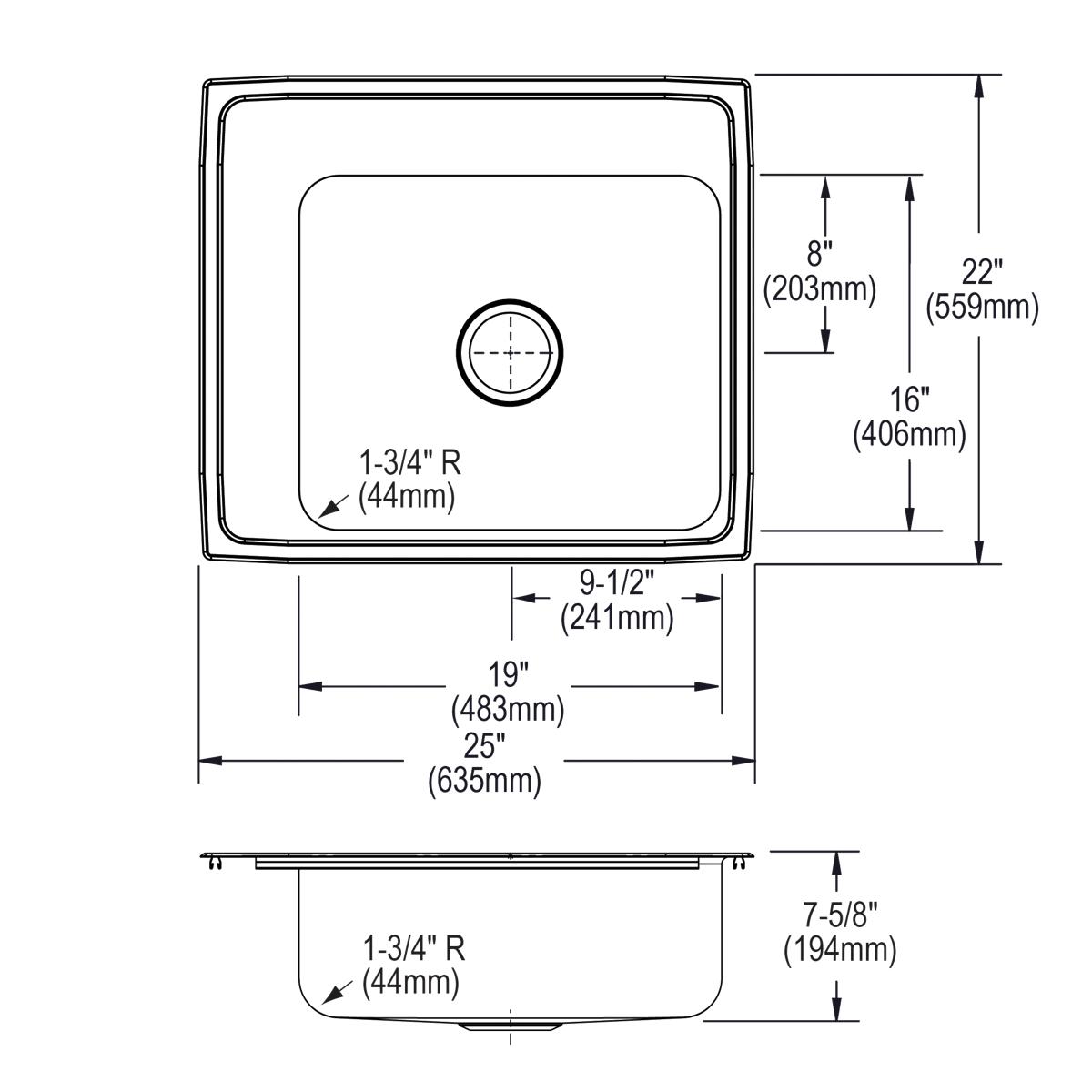 Elkay Lustertone Classic 25" x 22" x 7-5/8" Single Bowl Drop-in Classroom Sink