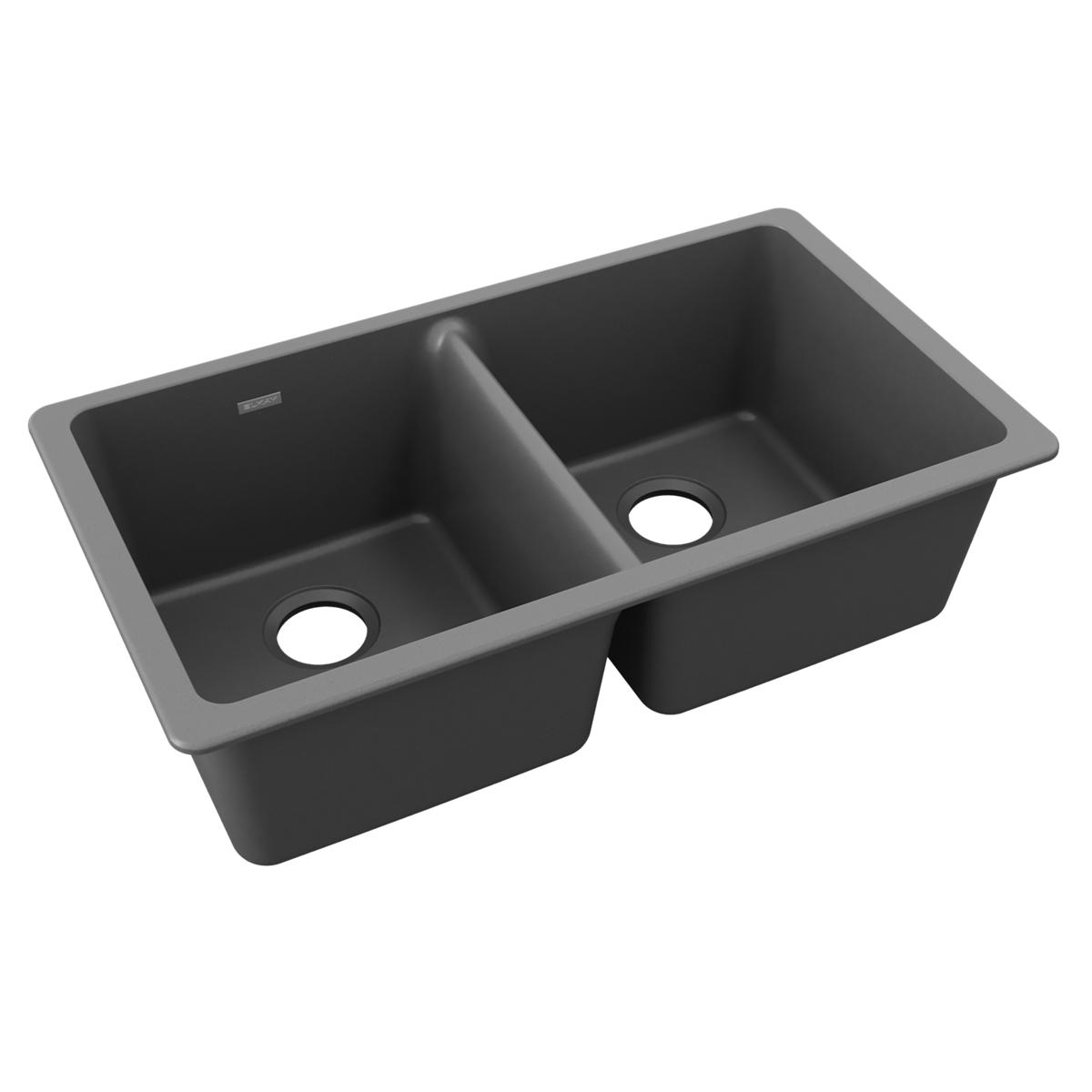 Introducing the Elkay Quartz Classic 33" x 18-1/2" x 9-1/2" Equal Double Bowl Undermount Sink, a perfect blend of functionality, durability, and elegance. Crafted from natural quartz, this sink not only enhances your kitchen aesthetics but also provides exceptional performance for all your culinary tasks. The smooth surface, coupled with its UV-stable neutral color options, including bold shades of black, brown, gray, and white, allows you to create a stunning centerpiece in your kitchen or utility space.