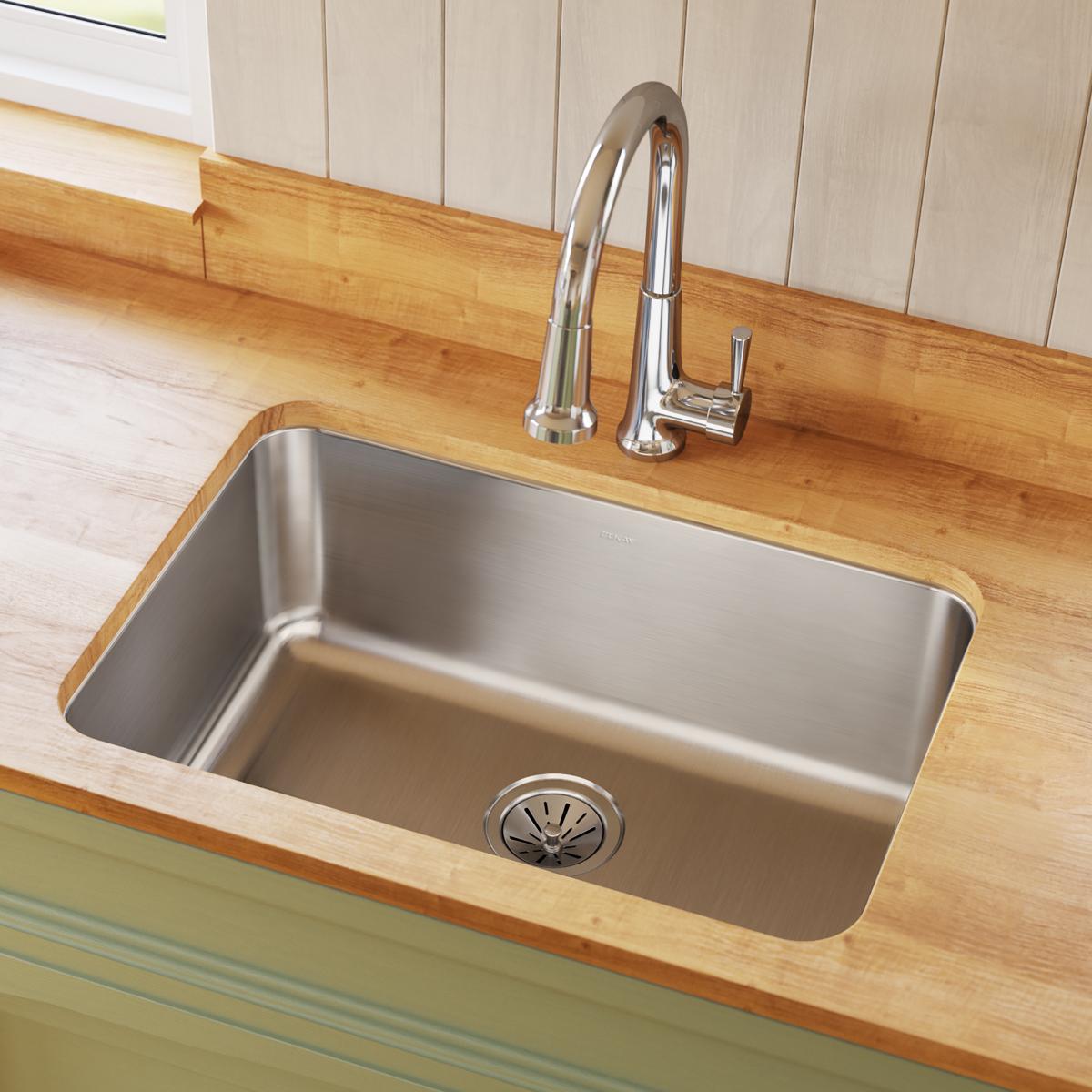 Introducing the Elkay Lustertone Classic 26-1/2" x 18-1/2" x 10" Single Bowl Undermount Sink, a perfect blend of style and functionality that will enhance any kitchen, bar, or laundry area. Designed for durability and ease of use, this stainless steel sink not only offers a stunning look that endures the passage of time but also boasts a forgiving finish that keeps it looking pristine even after years of heavy-duty use. From washing bulky pots to stacking dishes, the generous capacity and thoughtful design of this sink will make your daily tasks effortless and enjoyable.