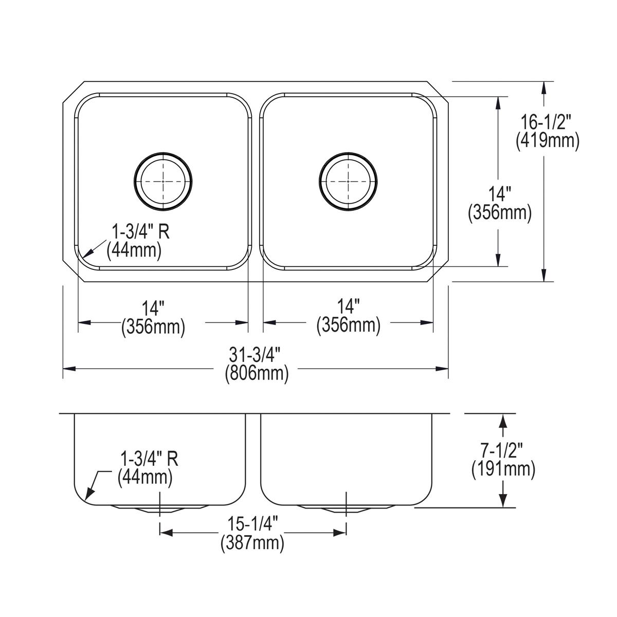 Elkay Lustertone Classic, 31-3/4" x 16-1/2" x 7-1/2" Equal Double Bowl Undermount Sink Kit