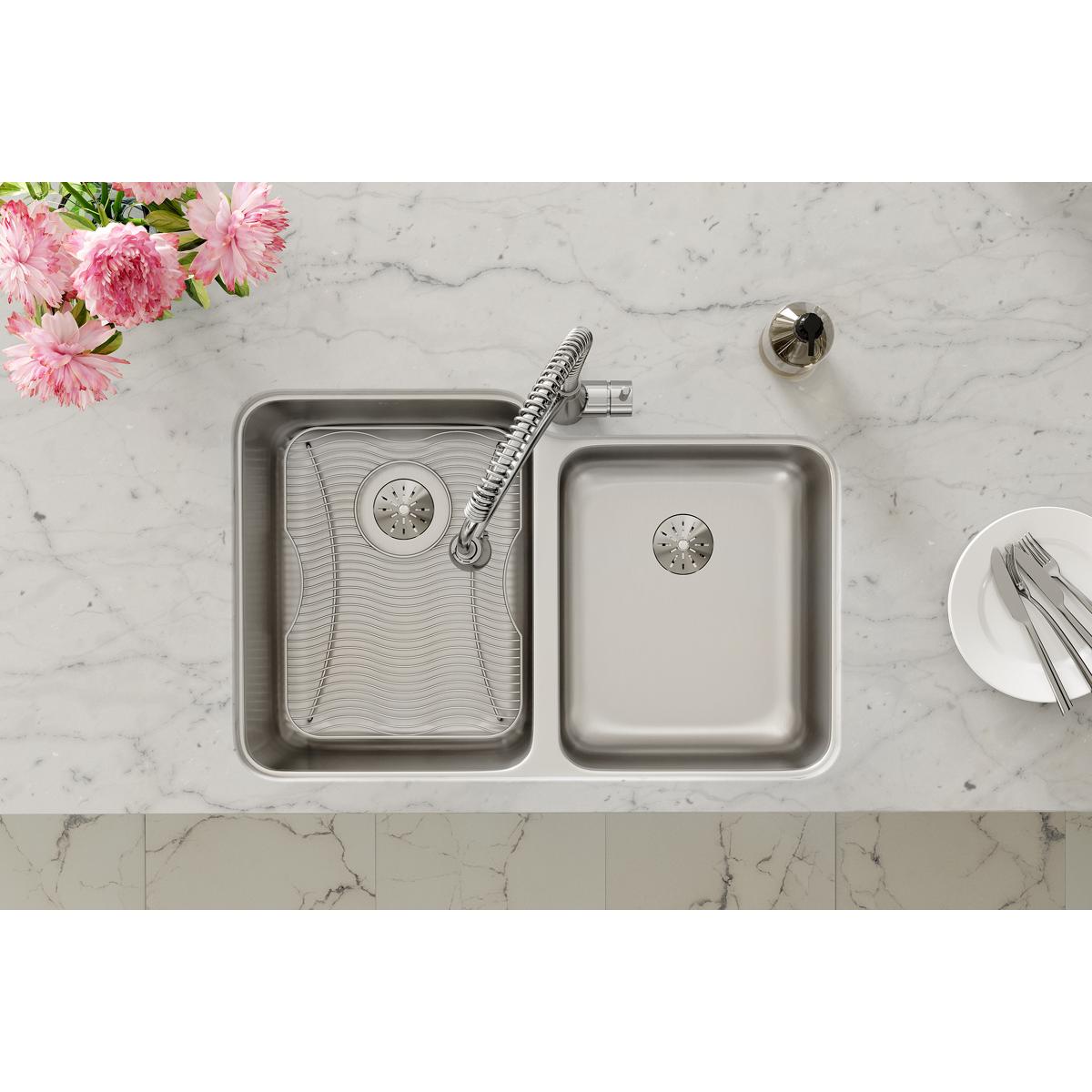 - KIT INCLUDES: ELUH3120RPD sink, one LKWOBG1418SS bottom grid, two LKPD1 Perfect Drains, and strainers; conveniently packaged together to save you time.