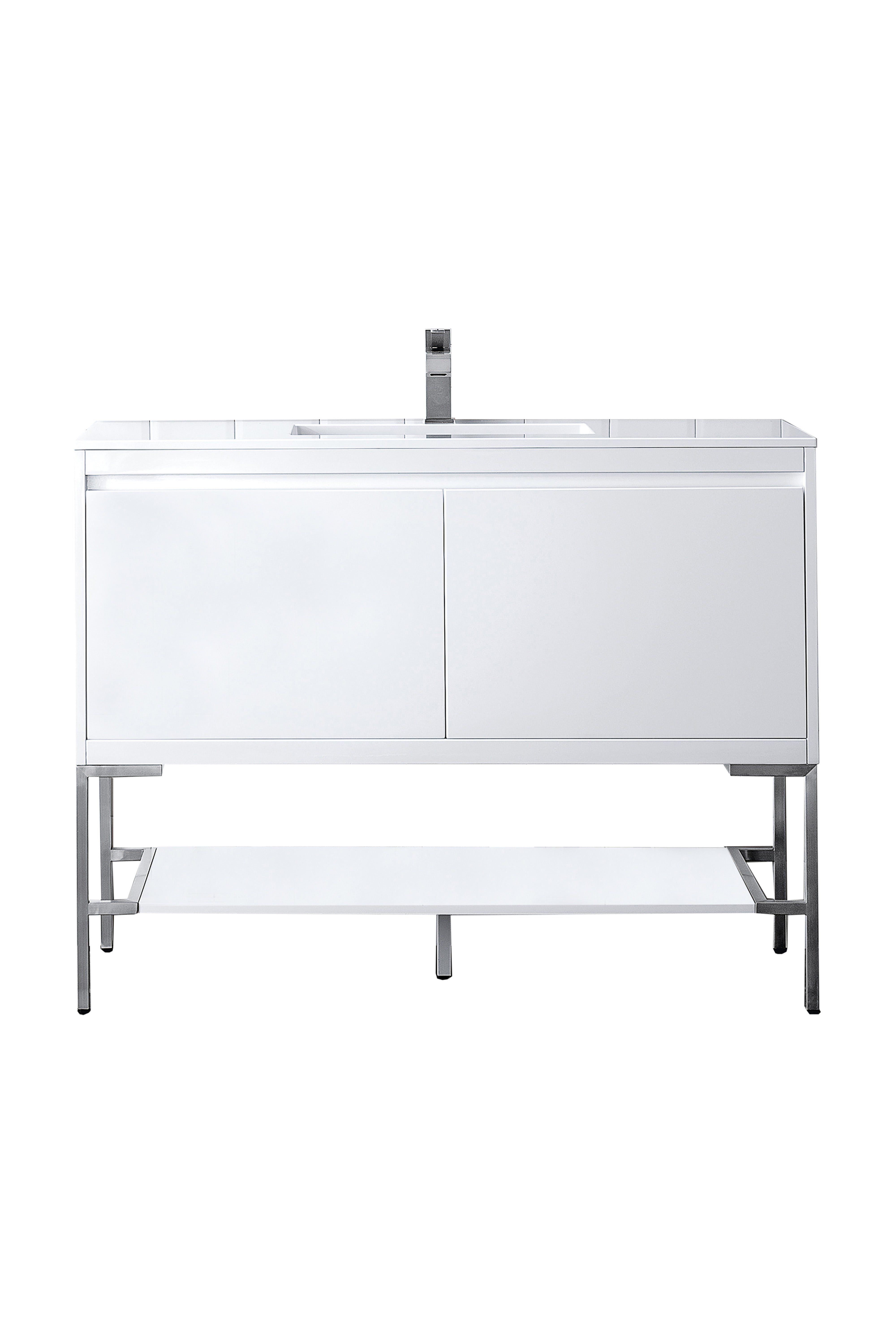 James Martin Vanities Mantova 47.3" Single Vanity - Glossy White - Brushed Nickel Base