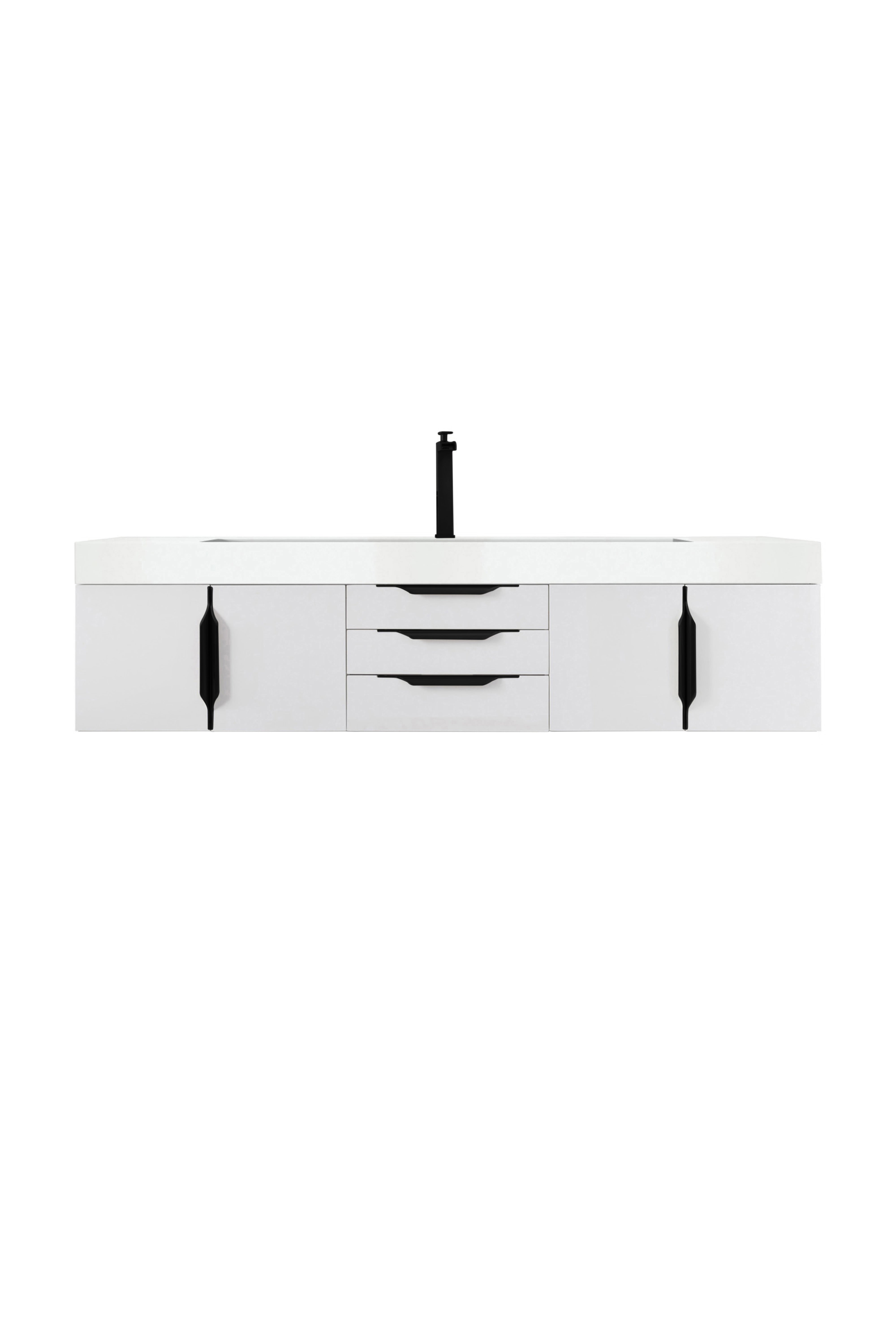 James Martin Vanities Columbia 72" Single Wall Mount Vanity With Matte Black Base and Glossy White Composite Stone Top