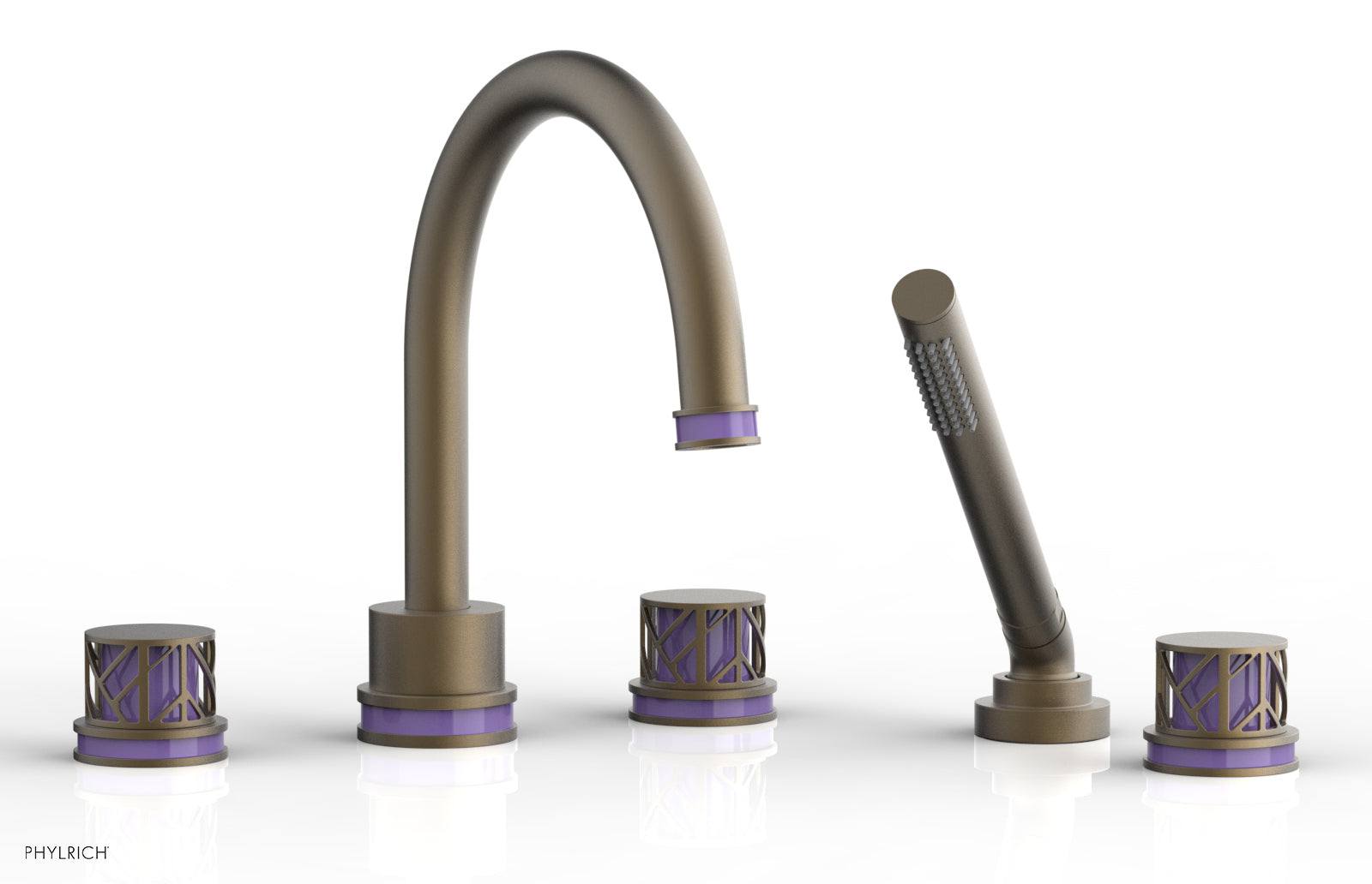 Phylrich JOLIE Deck Tub Set with Hand Shower - Round Handles with "Purple" Accents