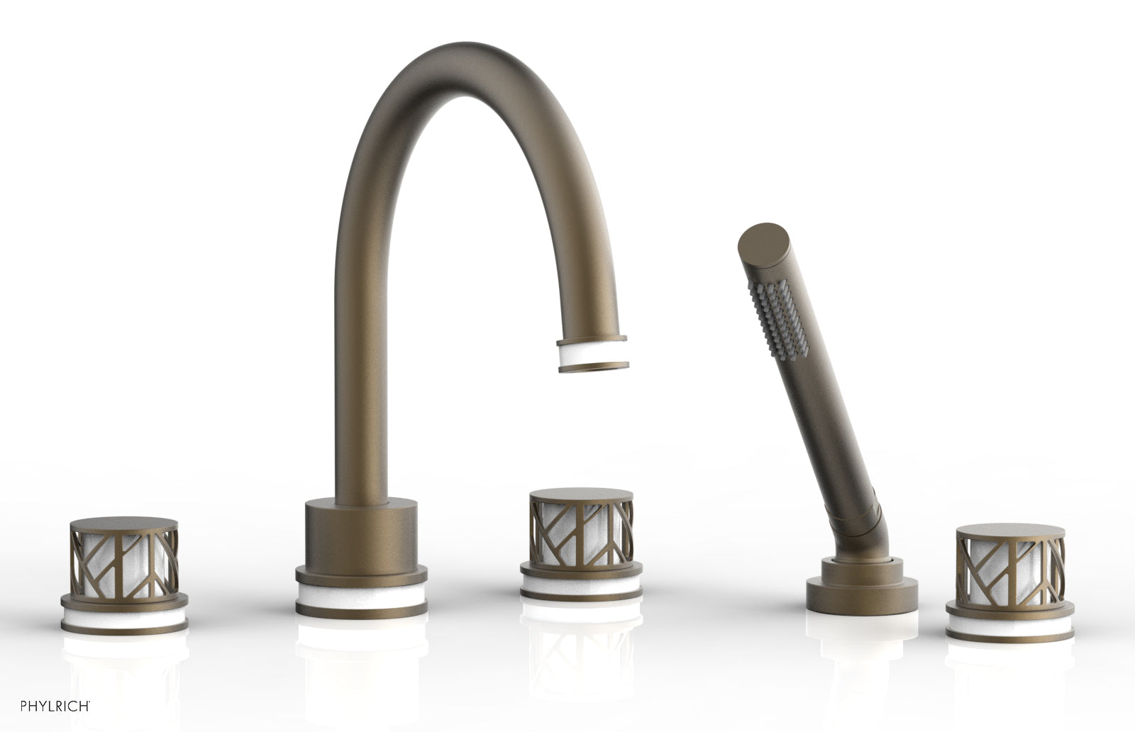 Phylrich JOLIE Deck Tub Set with Hand Shower - Round Handles with "White" Accents