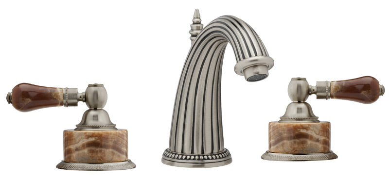 Indulge in the epitome of luxury with the Phylrich REGENT Widespread Faucet Brown Onyx. This exquisite faucet from the Regent Collection is designed to elevate your bathroom aesthetic, combining traditional style with modern functionality. Featuring stunning semi-precious stone accents, the Brown Onyx finish adds a touch of sophistication that transforms any space into a serene oasis.