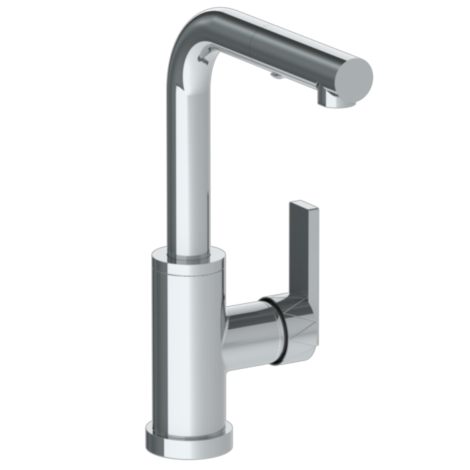 Upgrade your kitchen with the Watermark Lily Kitchen Deck Mounted 1 Hole Square Top Prep Faucet with Pull Out Spray and experience the blend of luxury and utility that only Watermark can provide.